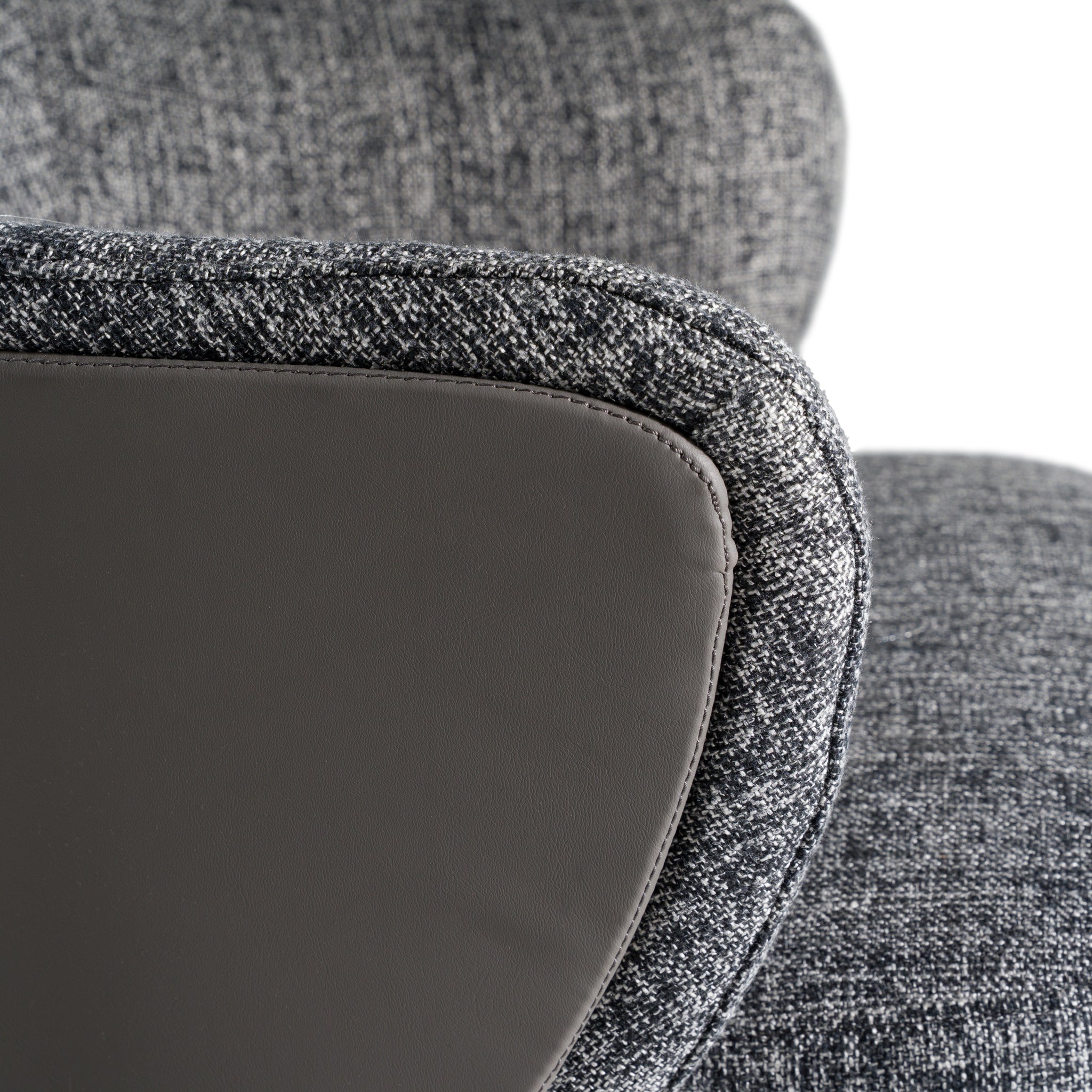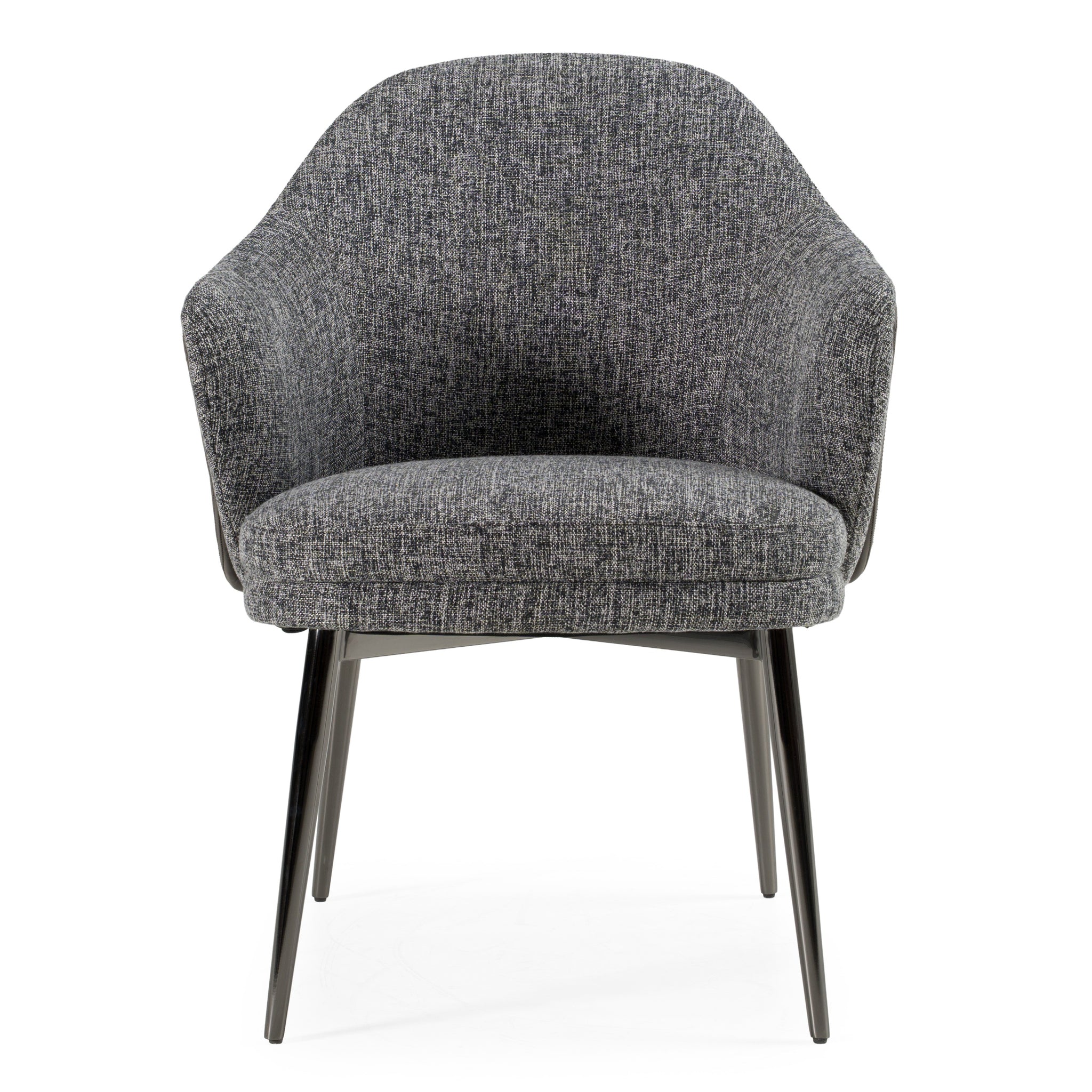 The Cora Dining Chair is an excellent example of contemporary design. The mix of the grey woven fabric against the grey vegan leather backing creates texture and contrast within the upholstery. Black stainless-steel legs complete the look and finish off this modern chair.
