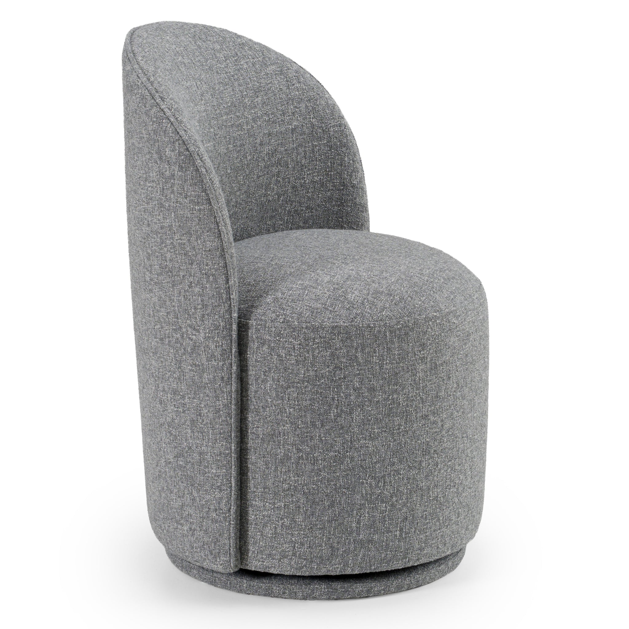 Introducing the Modrest Correa Modern Grey Fabric Swivel Dining Chair, a stunning blend of contemporary design and comfort. Its sleek, rounded silhouette features a plush, upholstered seat and backrest in a soft grey fabric, perfect for adding a touch of elegance to any dining space. The swivel base enhances mobility, making it a practical yet stylish choice for both casual and formal settings. Elevate your dining experience with this chic addition that marries aesthetics and functionality seamlessly.