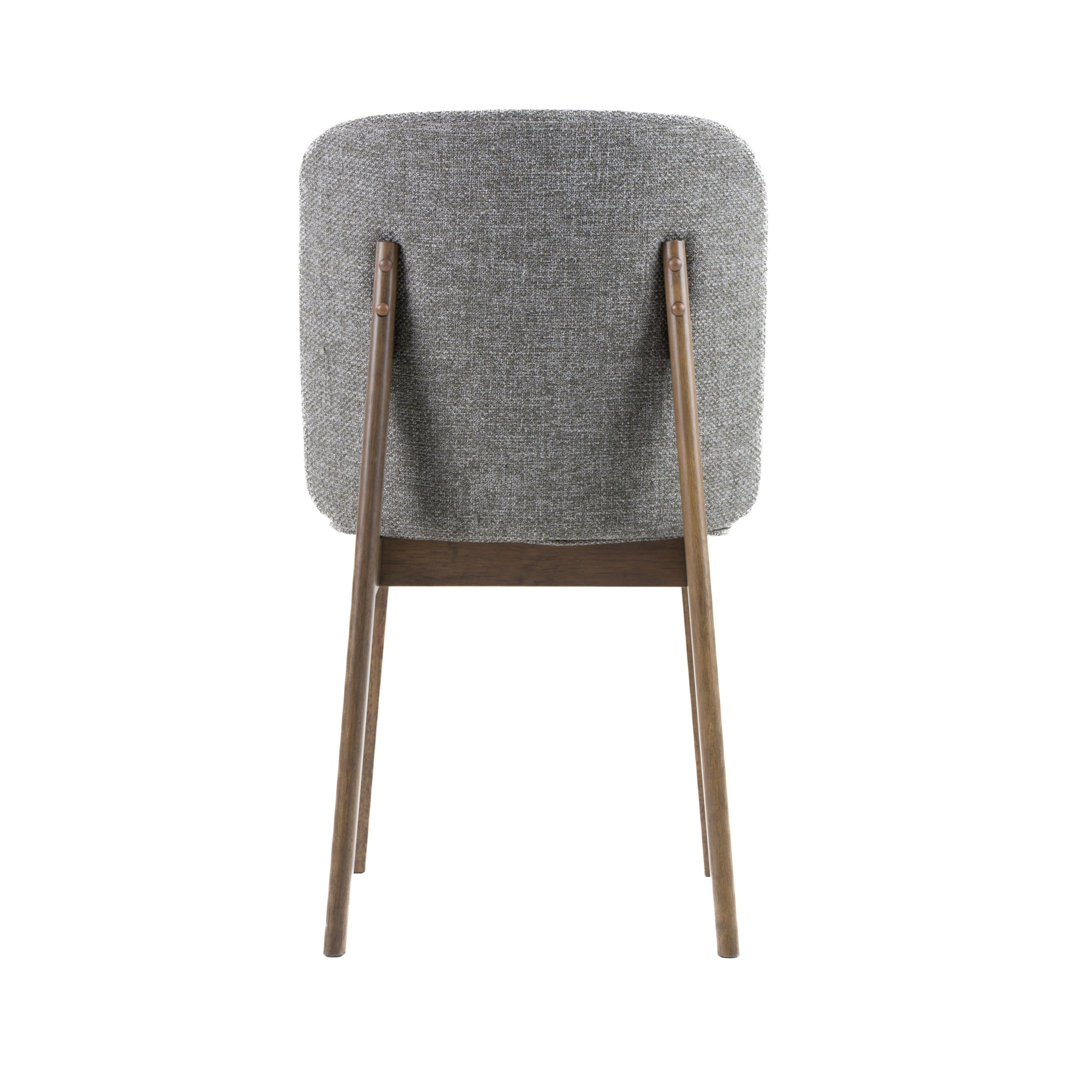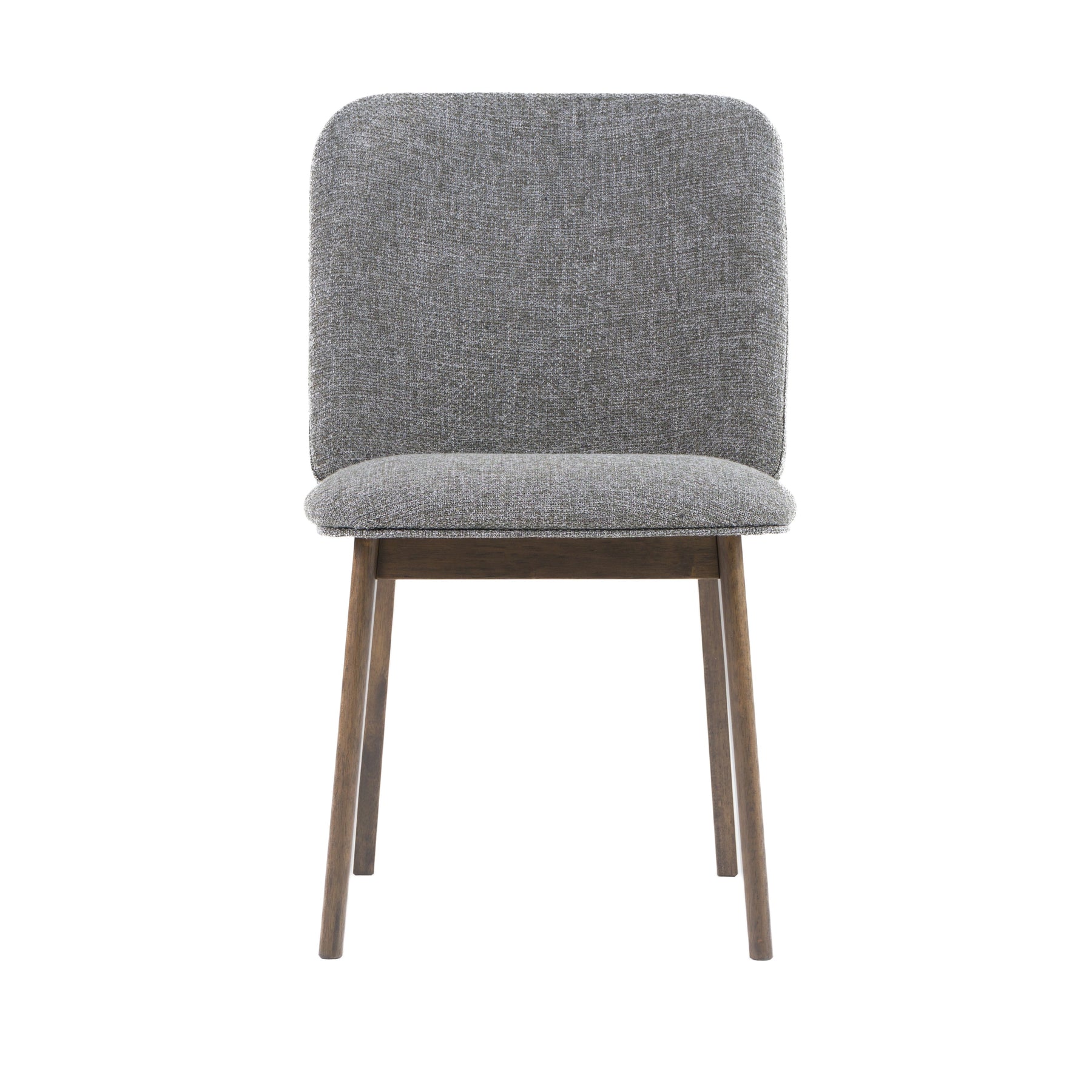 The Modrest Costello - Mid-Century Modern Grey Fabric + Wenge Dining Chair (Set of 2) offers a stylish addition to any dining space. This set includes two upholstered side chairs, crafted with a blend of 77% polyester, 15% acrylic, and 8% cotton in a sophisticated grey and night wenge color palette. The chairs are constructed from manufactured wood and solid rubberwood, providing both durability and a weight capacity of 220 lbs. Minimal assembly is required, and maintenance is simple with a dry soft cloth for cleaning.