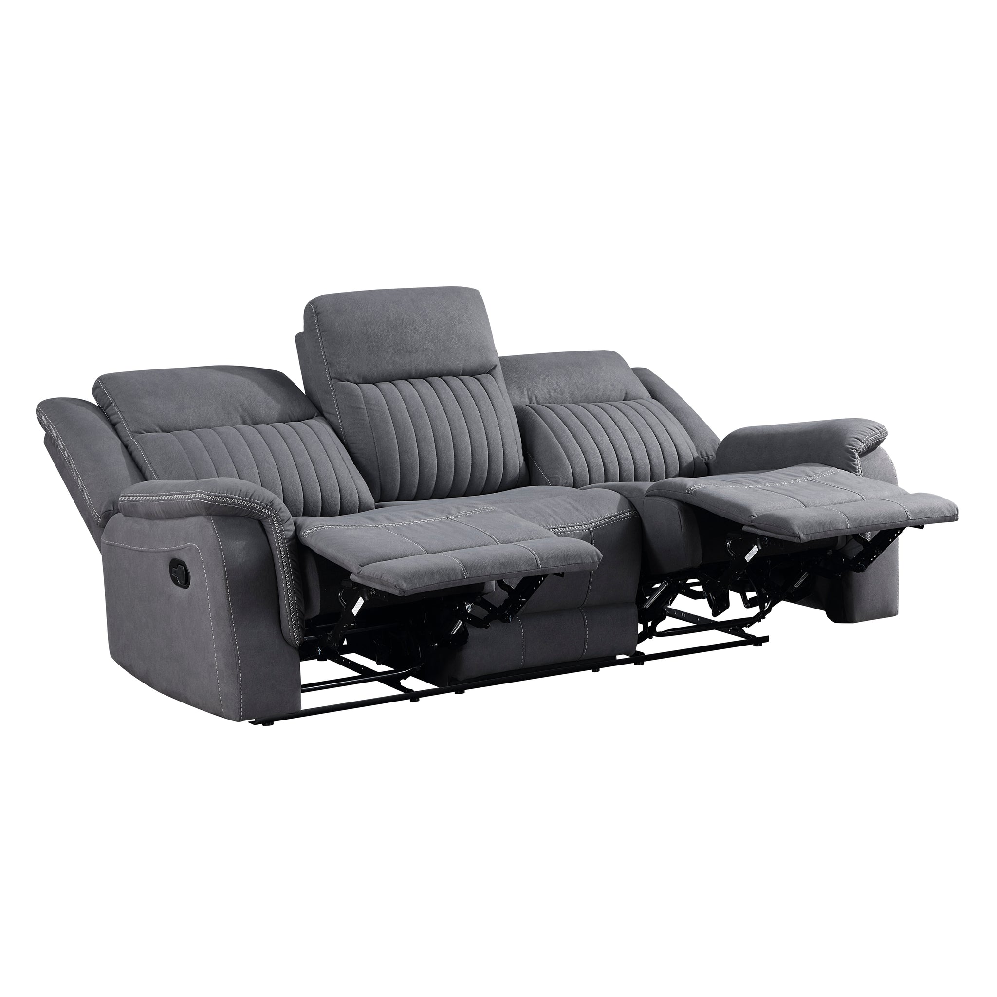 Convenience and comfort provide the basis of the design of the Dean Collection while the unfettered lines of modern design lend a casual air to the seating group’s profile. The sofa features dual reclining ends while the manual motion mechanisms allow for your reclined experience and are engaged with a pull of the side mounted tab. Gray polished microfiber presents as a neutral palette for your home’s subtle modern style.