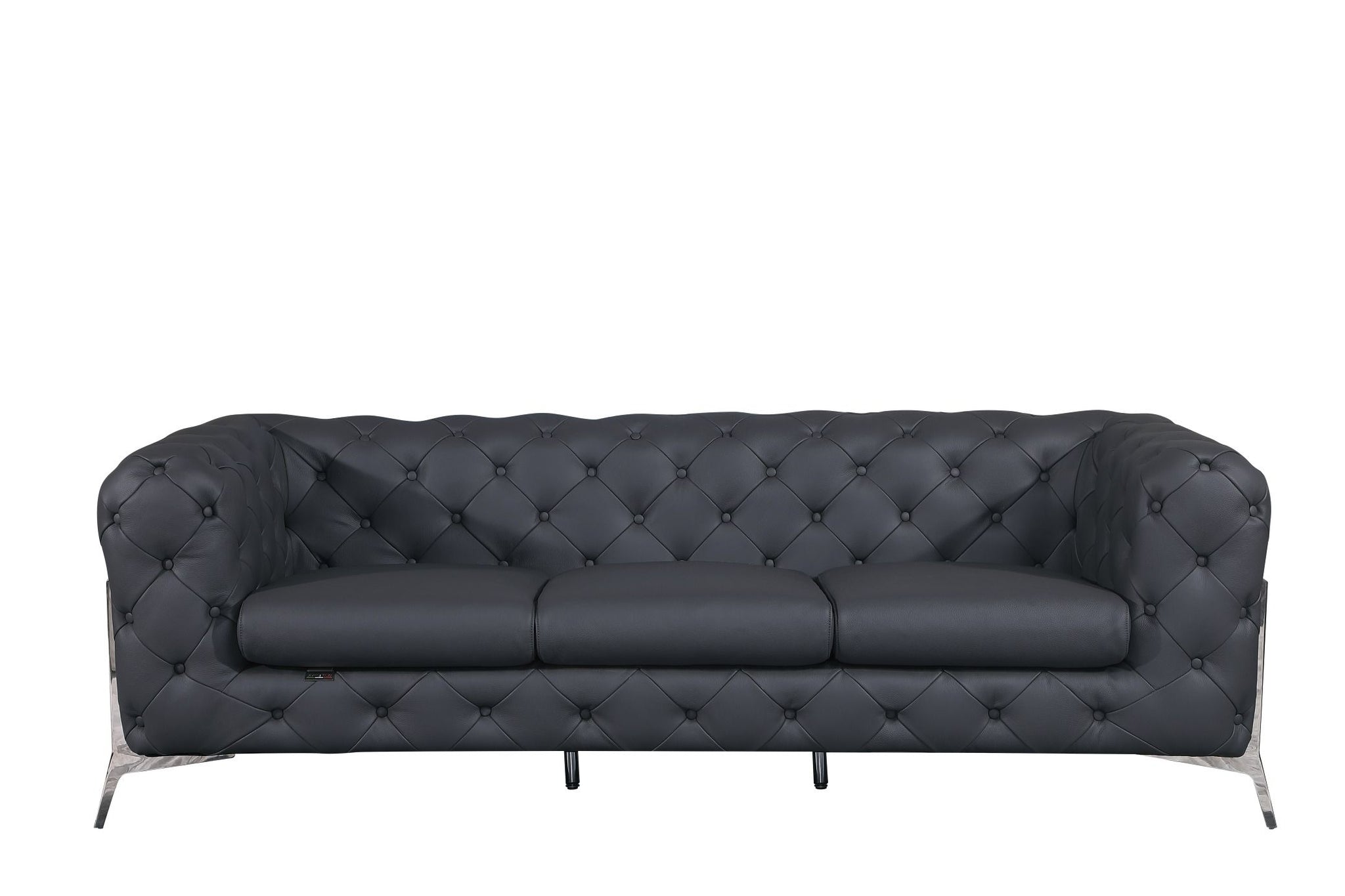 DivanItalia 970 Italian Leather Dark Gray Leather Sofa and Two Chair Set