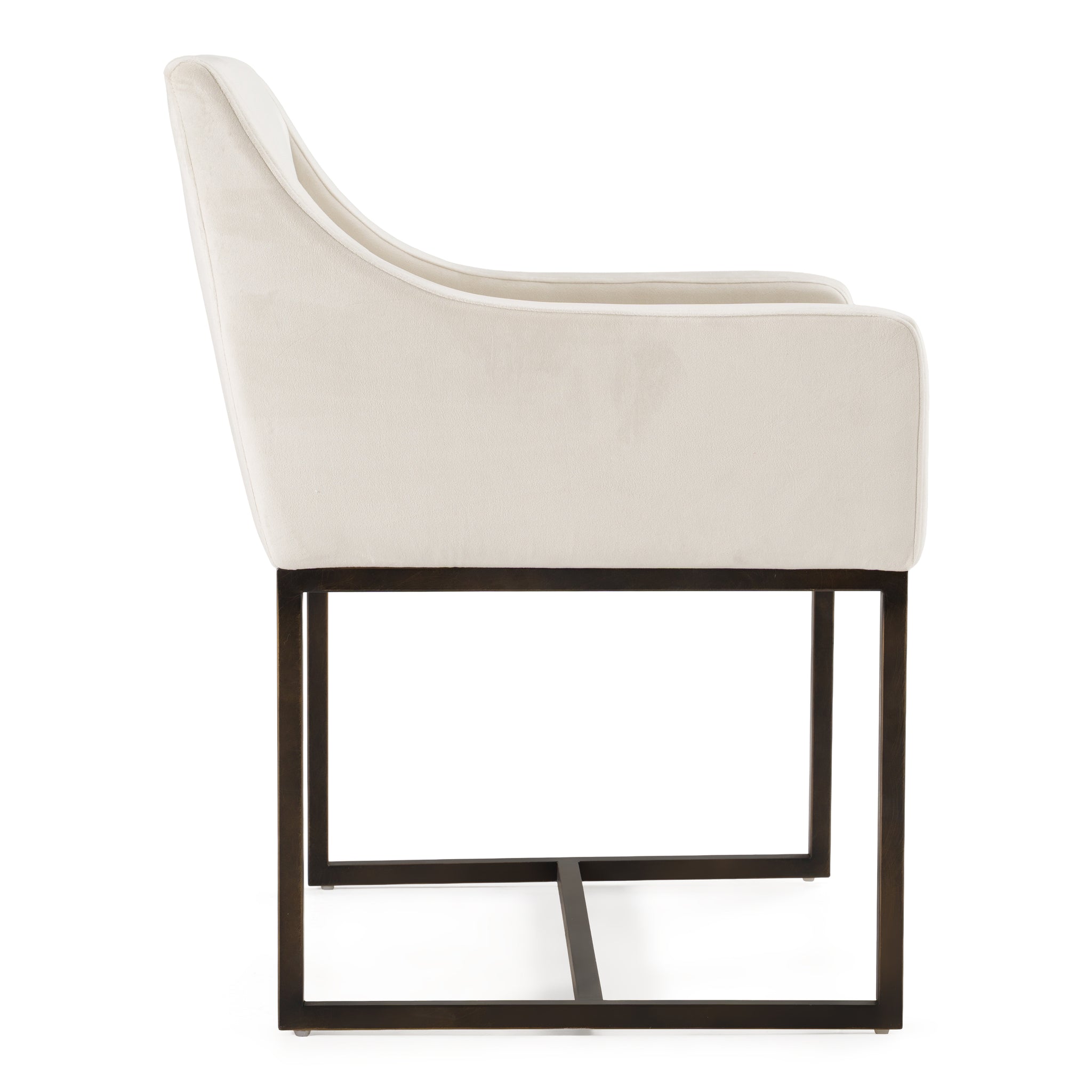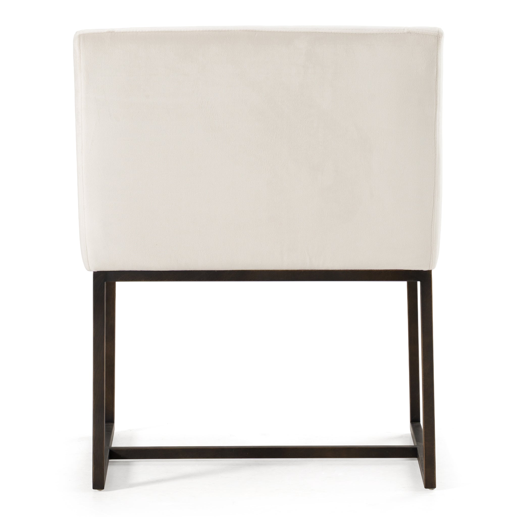 The Elijah Dining Chair is a beautiful modern contemporary piece of furniture. The squared slope arms match height perfectly with the low back of the chair, creating a fully embracing silhouette. Upholstered in an beige velvet fabric, this chair is comfortable and stylish. The antique brass finished legs have modern lines and contrast the soft fabric. These versatile chairs can be paired with any style and look right at home.