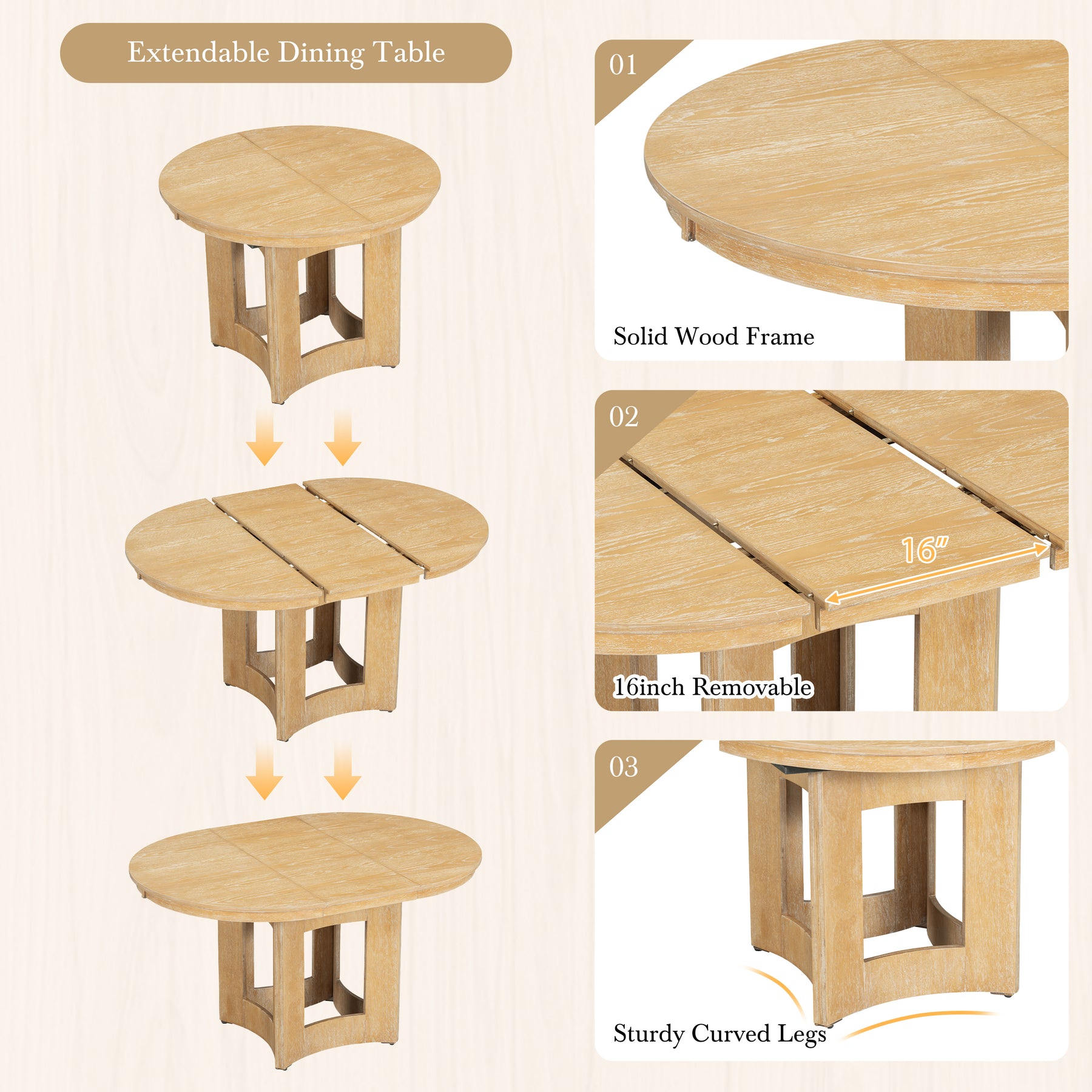Expandable Design with Removable Leaf for Flexibility: Ideal for small households that occasionally host guests, the extendable table includes a 16-inch removable leaf. Expand it when needed, and easily store to save space. This smart, flexible design adapts to your lifestyle — great for weekday meals and weekend gatherings alike.