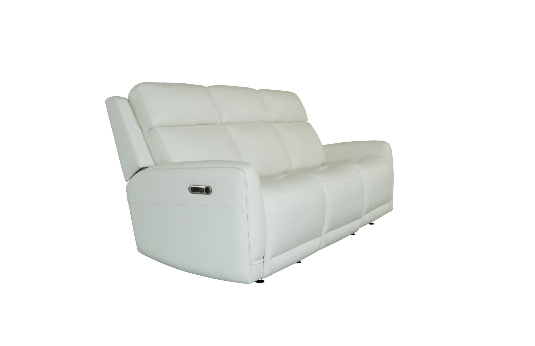 Bring your living room to the next level with the sleek, innovative Alister power gliding sofa. This transitional style sports sleek curves upholstered in your choice of luxurious top-grain leather. A step above typical reclining, these gliding seats provide a smooth, versatile, and unique experience. The ultimate in futuristic comfort, this sofa includes a drop down back cushion with two cupholders, a wireless charging pad, and USB ports to keep your devices charged and within reach. Kick back in the Alister, the future of relaxation.