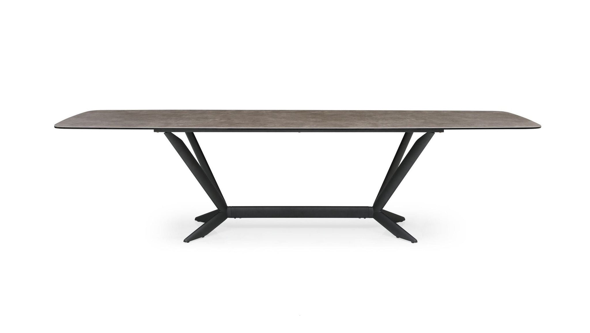 The Herzog Dining table mixes modern and industrial in the medley of a grey ceramic tabletop and a metal black coated base that screams elegance. This dining table seats 12 people comfortably for social gatherings and Sundays with the family.