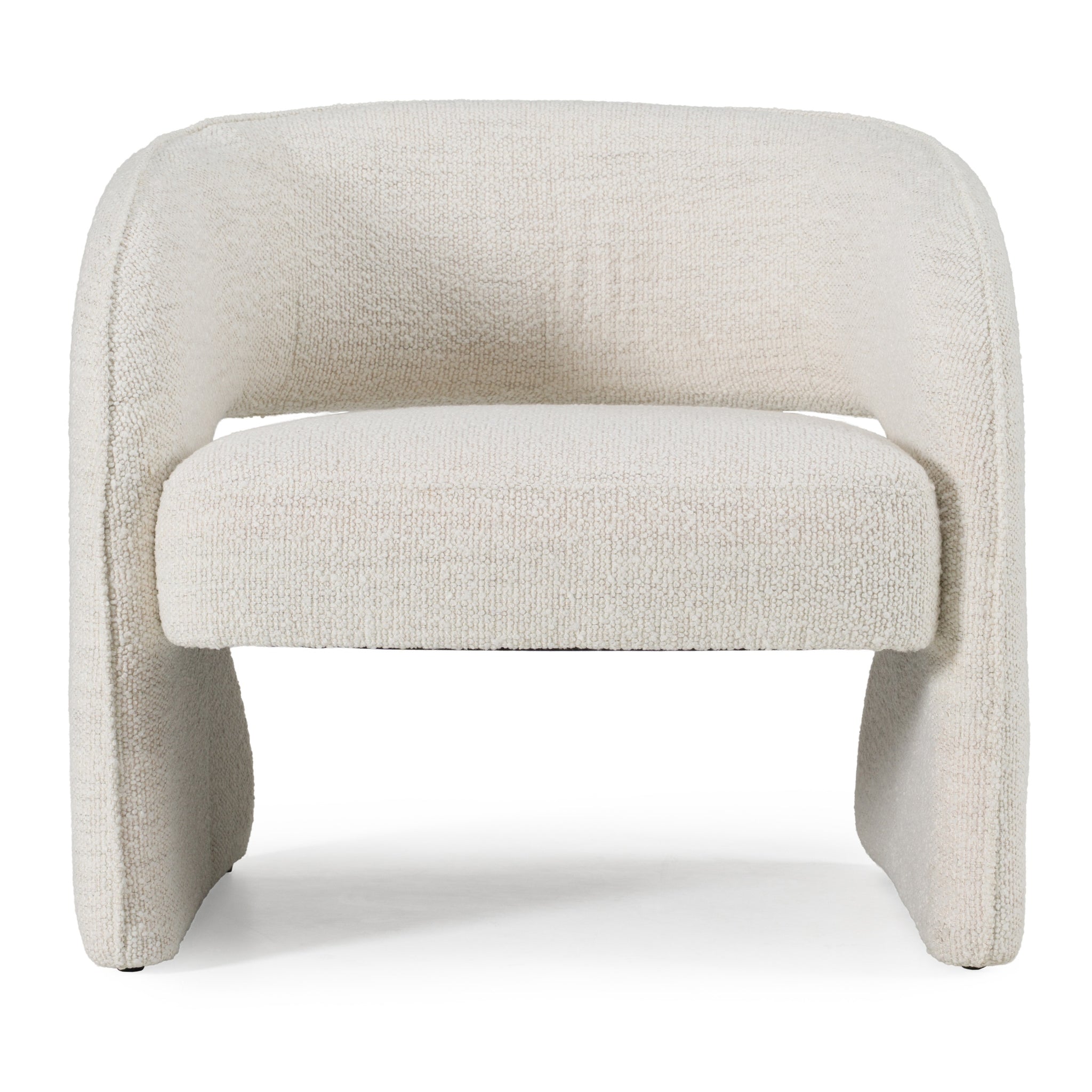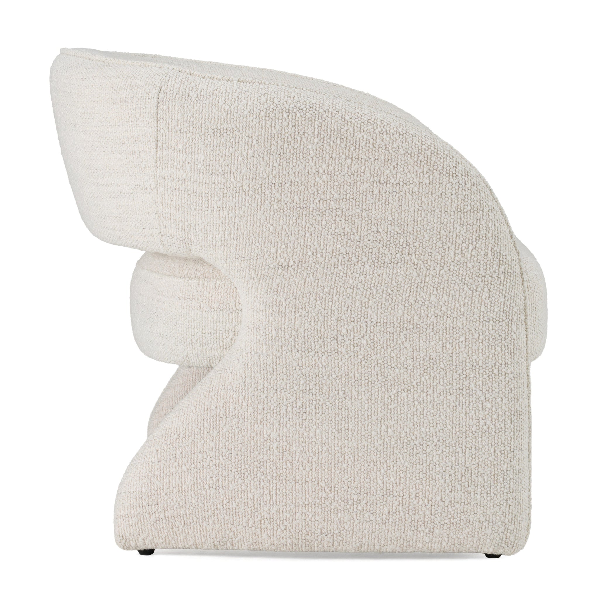 Our Luby accent chair's sculptural shape will add to the aesthetic of any environment. The curved back and textured upholstery make this chair particularly enjoyable to sit on. Note how the open base and cut out in the back rest make this chair feel airy and light. It would look fantastic in pairs within a bedroom, reading corner, or sophisticated home office.