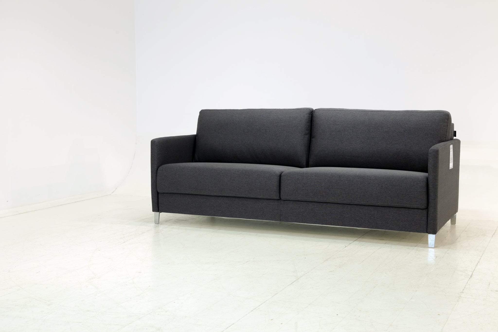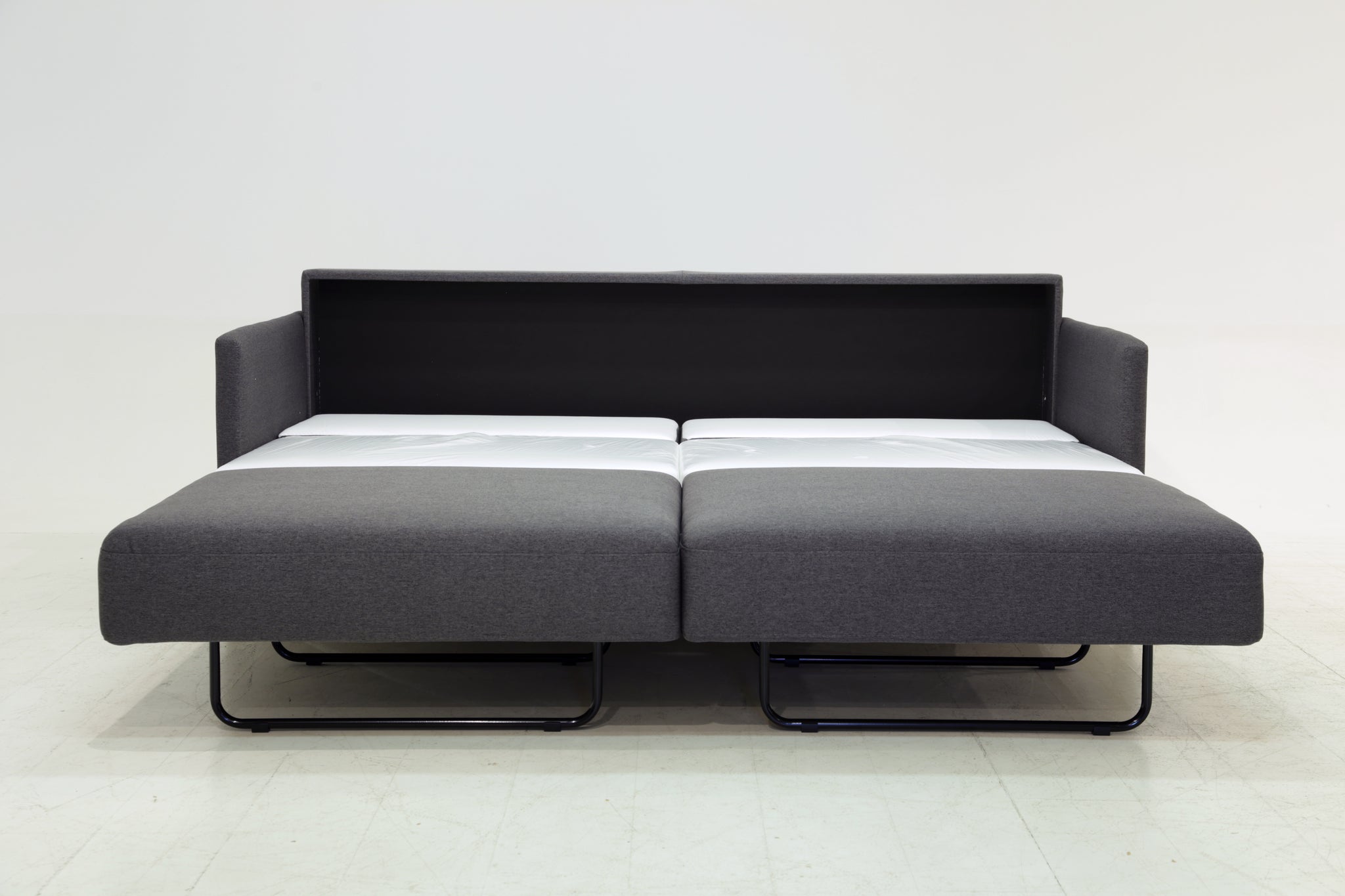 The versatile Elfin sofa fits sleepers from king to cot size in a compact frame. With plush cushions for lounging comfort, Elfin features the Nest Function - each seat lifts to reveal twin beds for simultaneous sitting and sleeping capacity. Despite its slim silhouette, Elfin adapts to provide cozy comfort whether sitting or accommodating overnight guests.