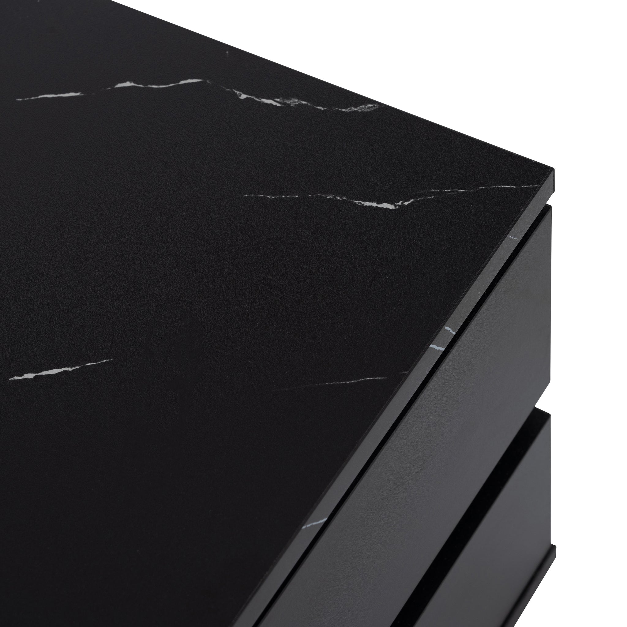 • With its simple rectangular appearance, this TV stand adds a touch of modern orderly comfort to your living space. Meanwhile the spacious imitation marble tabletop also provides elegant and high-end visual experience, Which will complement various home styles.