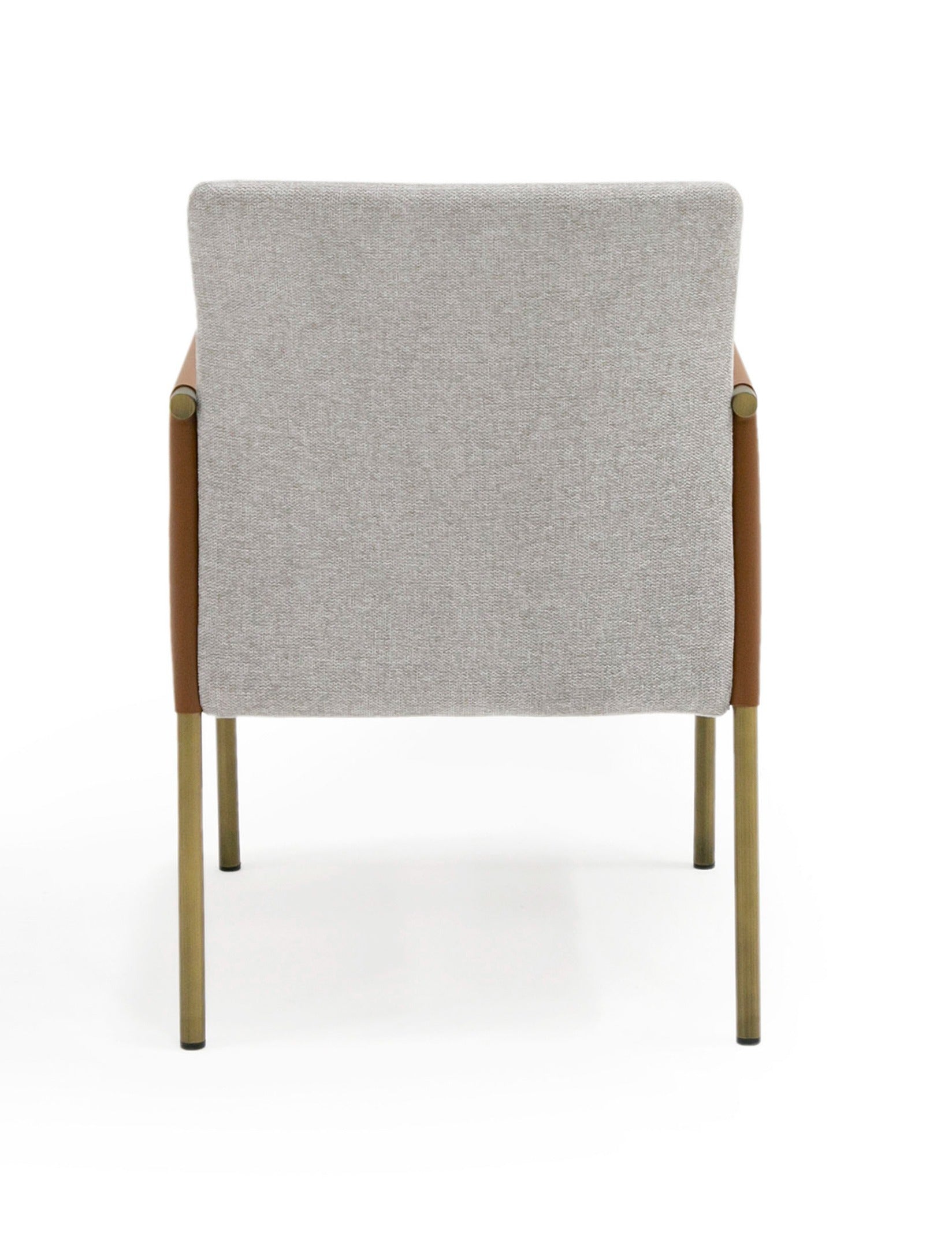 Pettit Modern Light Grey/ Camel and Brass Arm Dining Chair