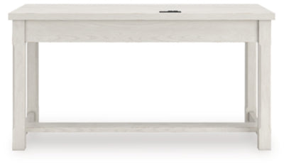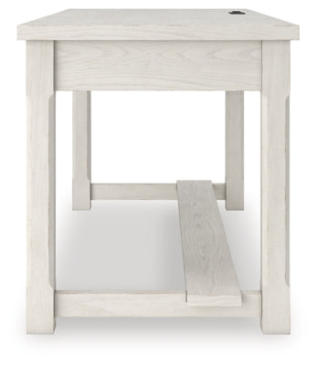 This home office desk is sure to impress when it’s time to study or work from home. With its antiqued white finish and wood grain texture, modern farmhouse-style workstations have never been so fashionable. A wide keyboard drawer and convenient USB charging bring function galore to your at-home office. Use this piece as a stand-alone work area, or pair it with the matching desk return (sold separately) to expand your workspace. All that’s missing is you.