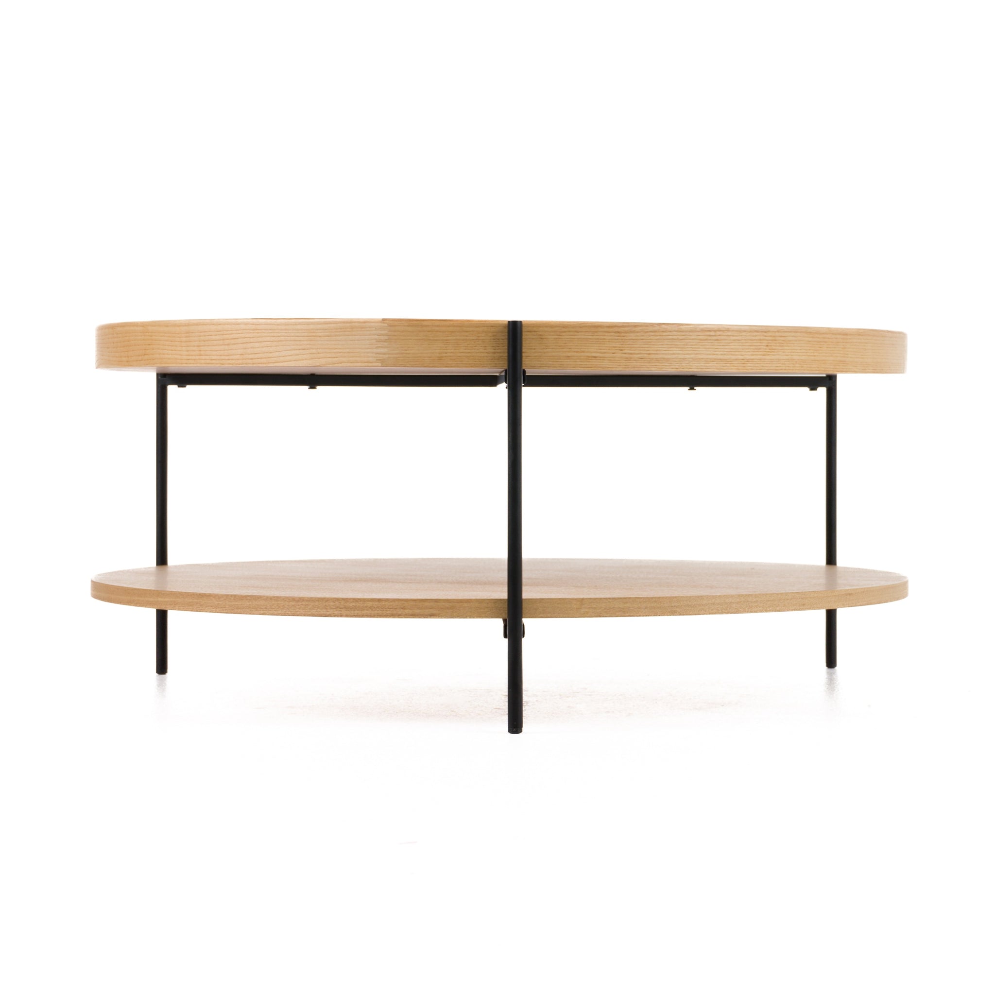 The Modrest Savoy Modern Natural Ash Large Coffee Table is a harmonious blend of organic elegance and minimalist design. Crafted with a natural ash veneer and supported by sleek black iron legs, its rounded silhouette exudes sophistication. The additional lower shelf offers both functionality and style, perfect for displaying curated decor or storing essentials. This statement piece seamlessly elevates any living space with its understated charm and timeless craftsmanship, inviting a sense of warmth and modernity to your home.