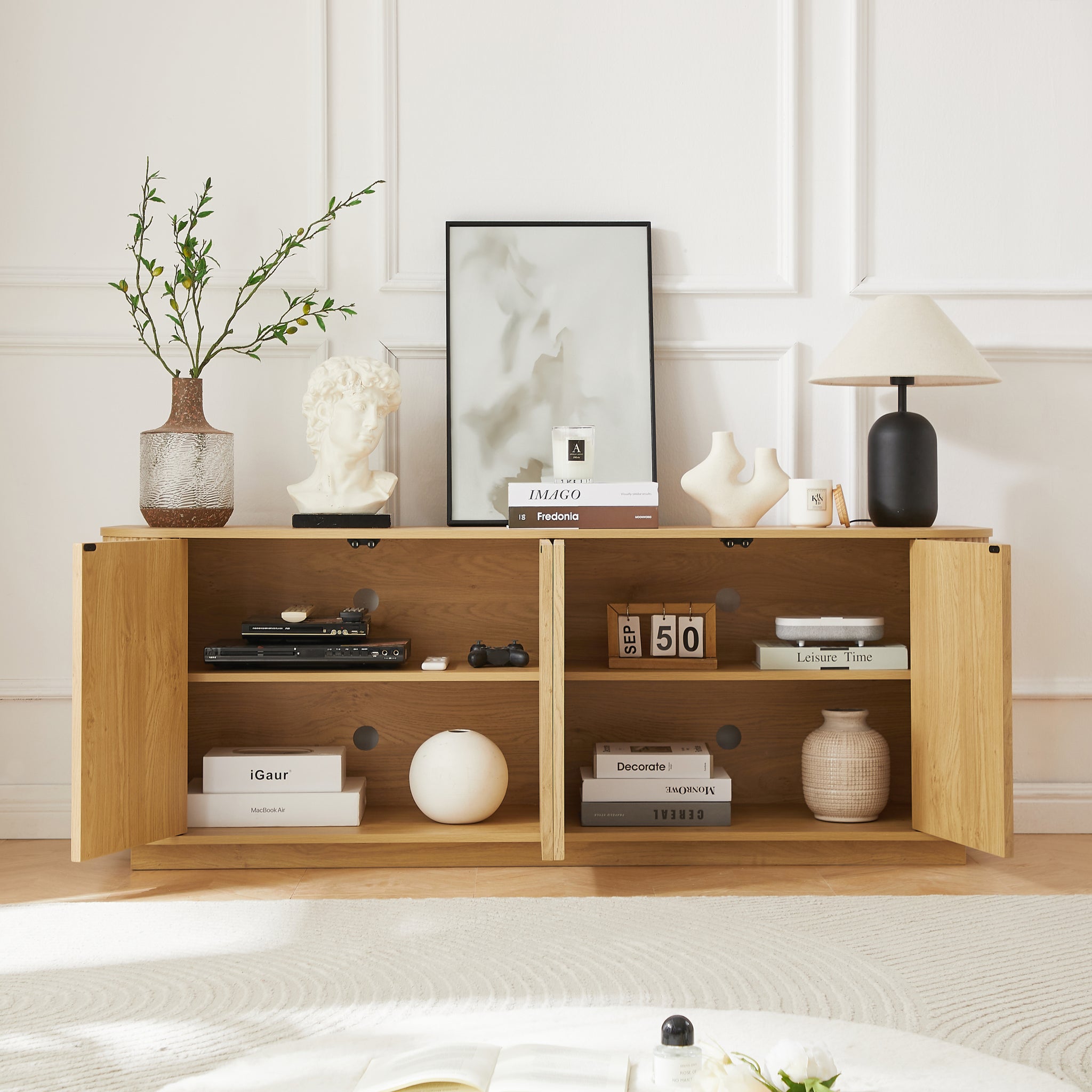 • This cabinet is suitable for all kinds of scenes, living room, dining room, kitchen and your studio, foyer entrance. It can be used as a sideboard, TV stand, closet or shoe cabinet and its large capacity allows it to perform most tasks.