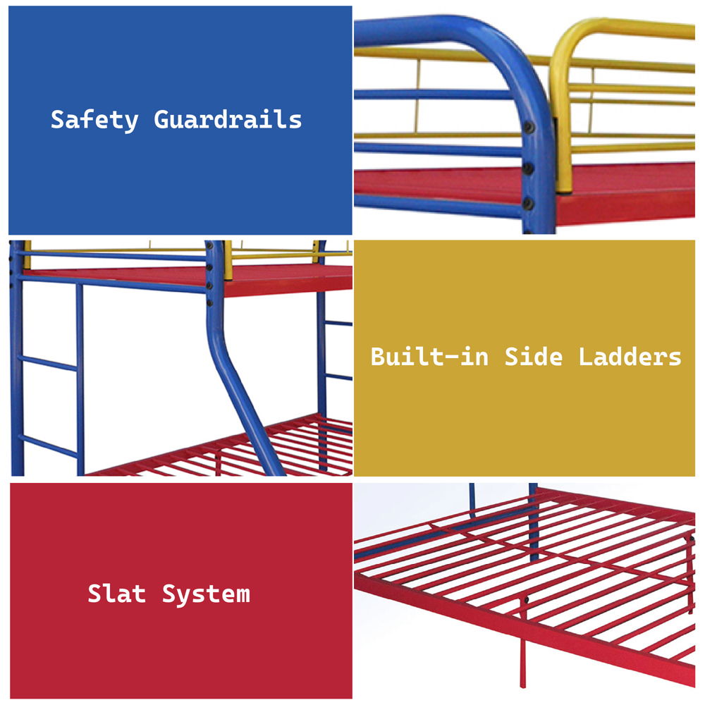 Bring home this Tritan twin over full bunk bed to let your kids enjoy personal space without compromising on style. Superior quality metal for durability, built-in side ladders for easy access, and full length guard rails for safety. Choose from a variety of colors, makes it compatible with all types of decor settings.