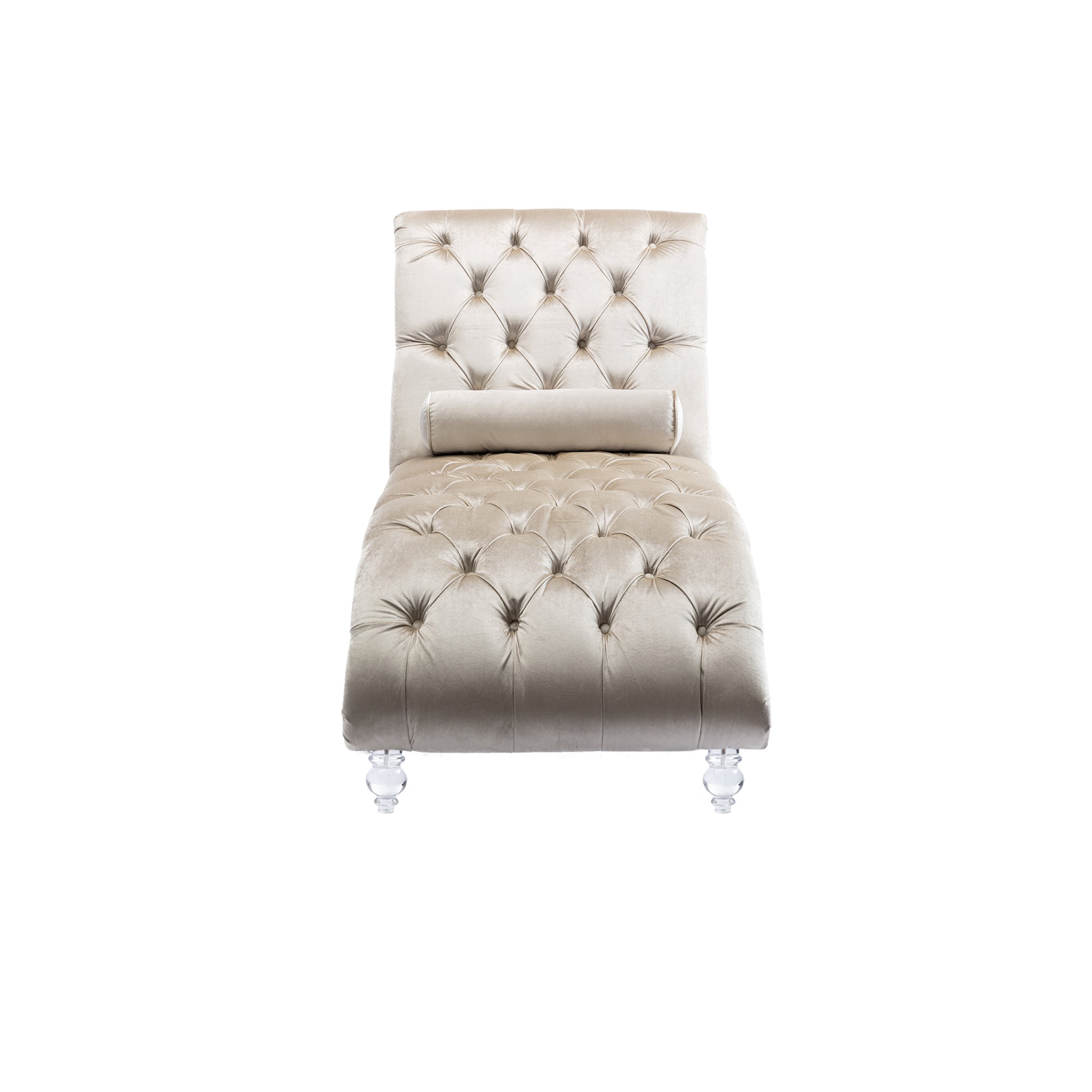Velvet Chaise Lounge, Button-Tufted Upholstered Chair, Beige Velvet